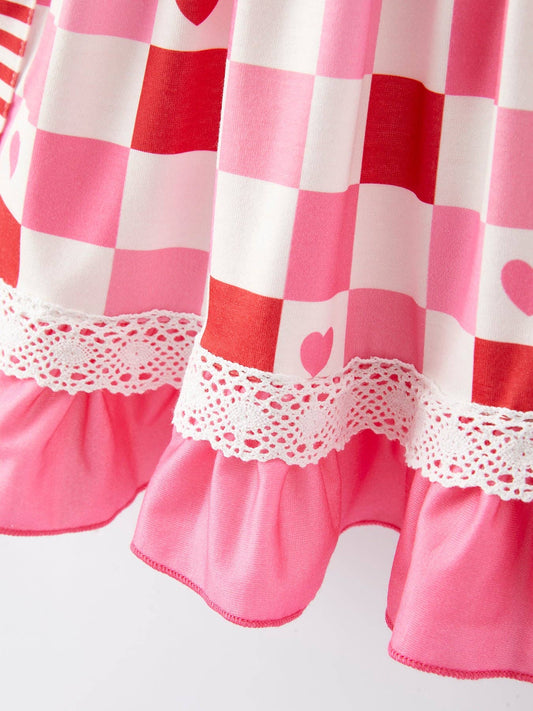 Valentine's Day Checkerboard Print Pink Pocket Dress: 2