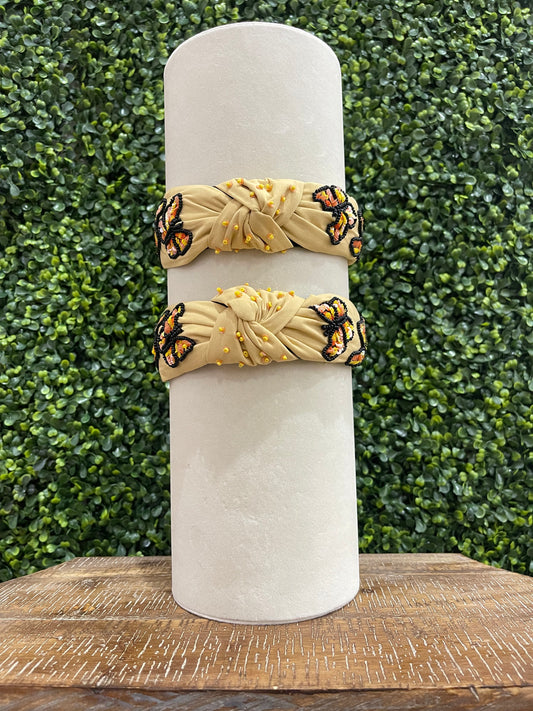 Neutral Butterfly Beaded Headband