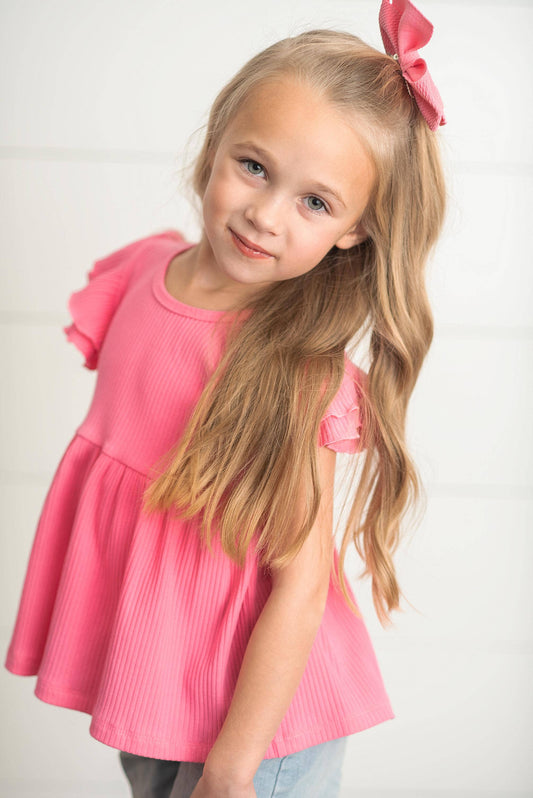 Bright Pink Double Ruffle Flutter Sleeve Top