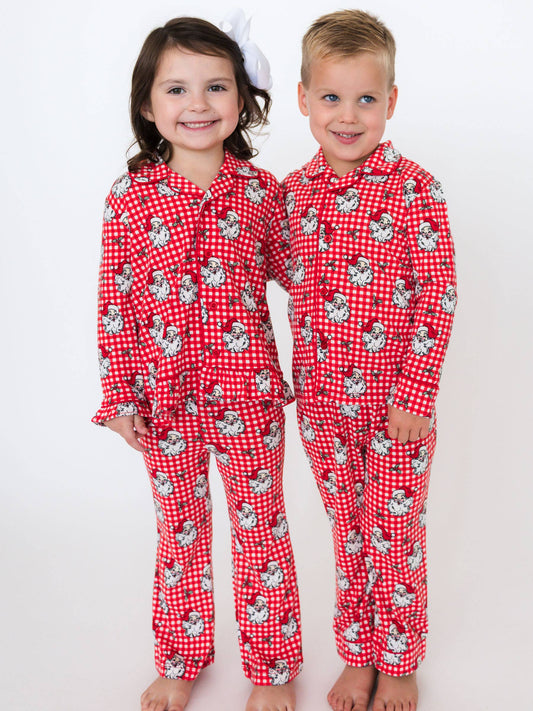 Red Dear Santa Long Sleeve Button Up Pajama Set