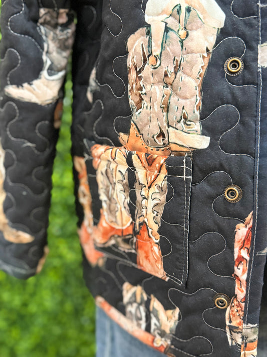 Thunderbird Boots Black Quilted Snap Jacket