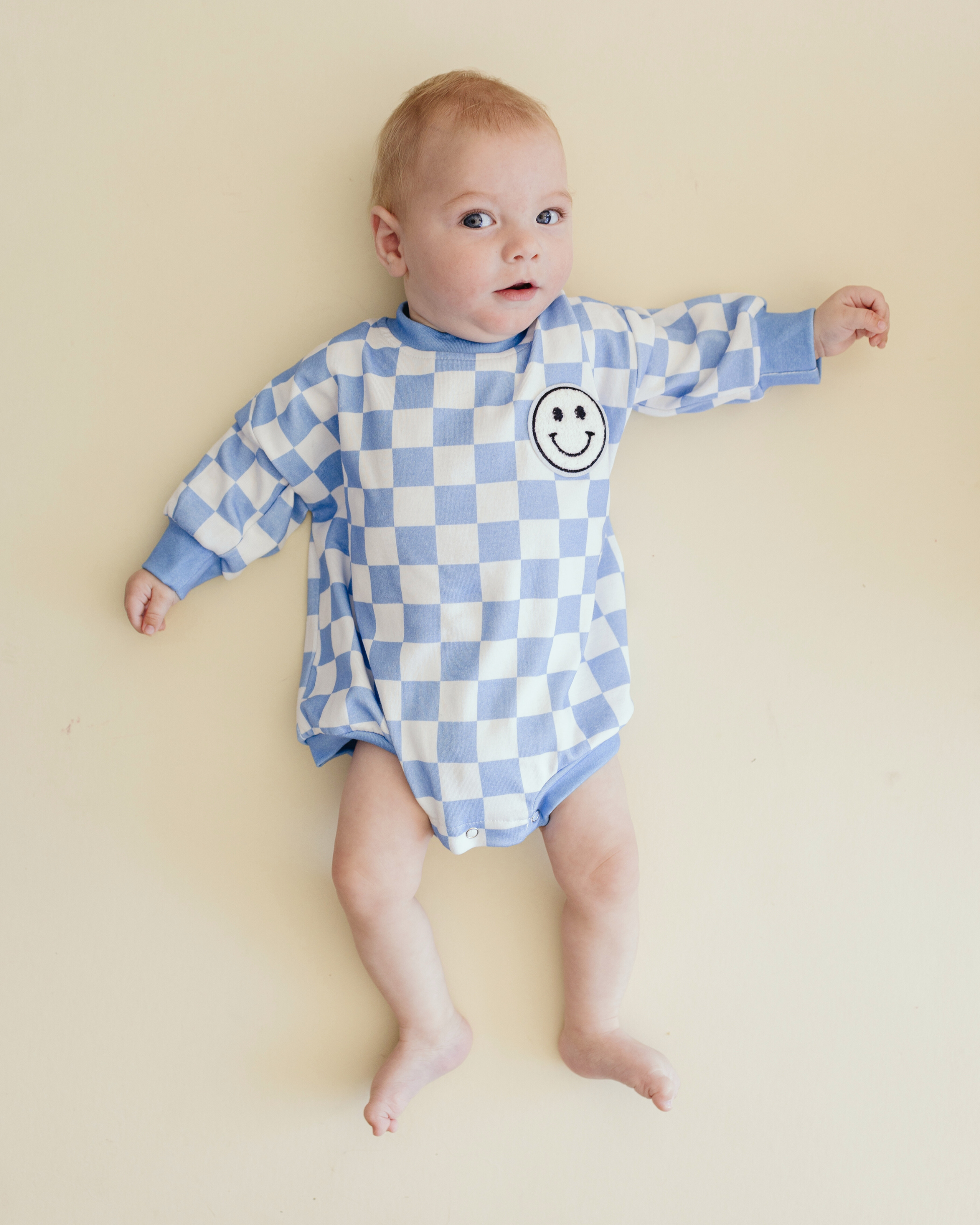 Checkered Smiley Bubble Romper