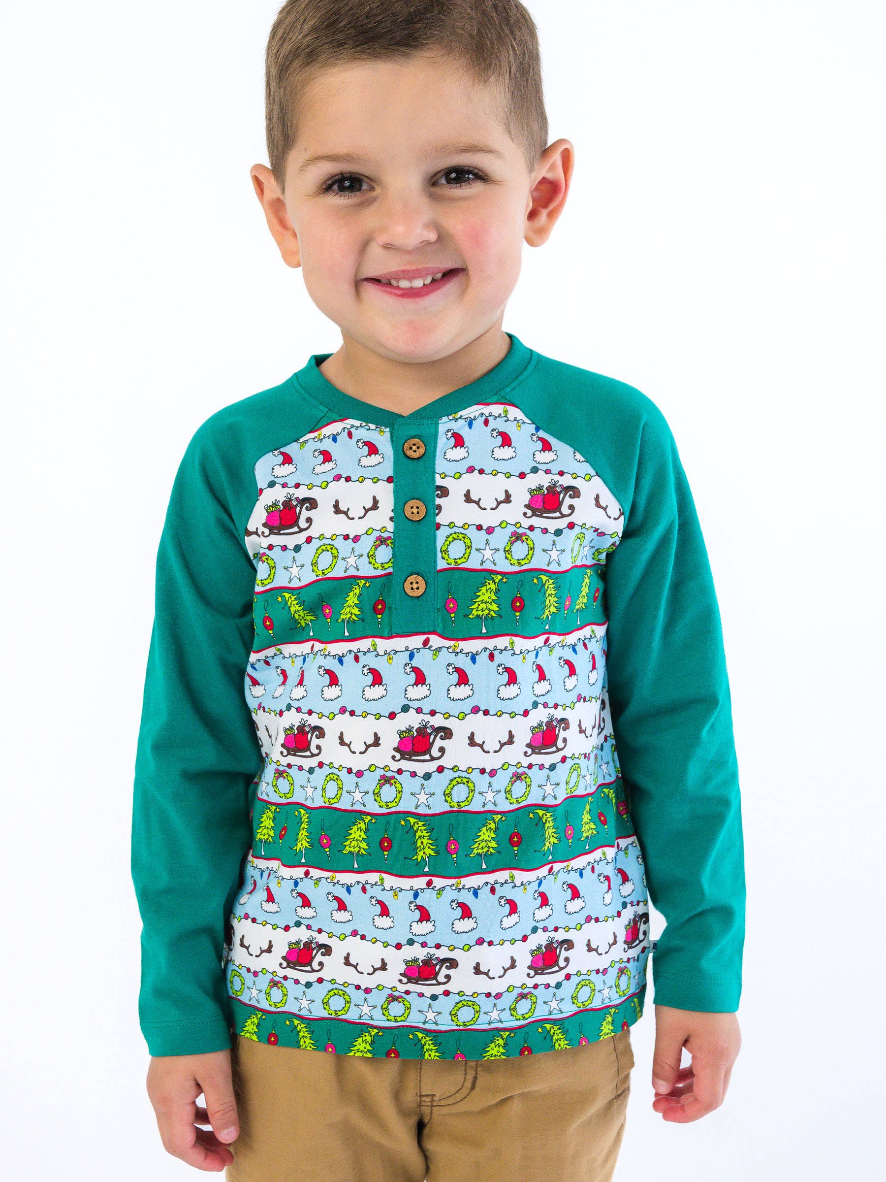 This fun, printed raglan hanley tee is crafted from soft knit fabric that will keep little ones comfy all day long. The classic button henley neckline makes it extra stylish.