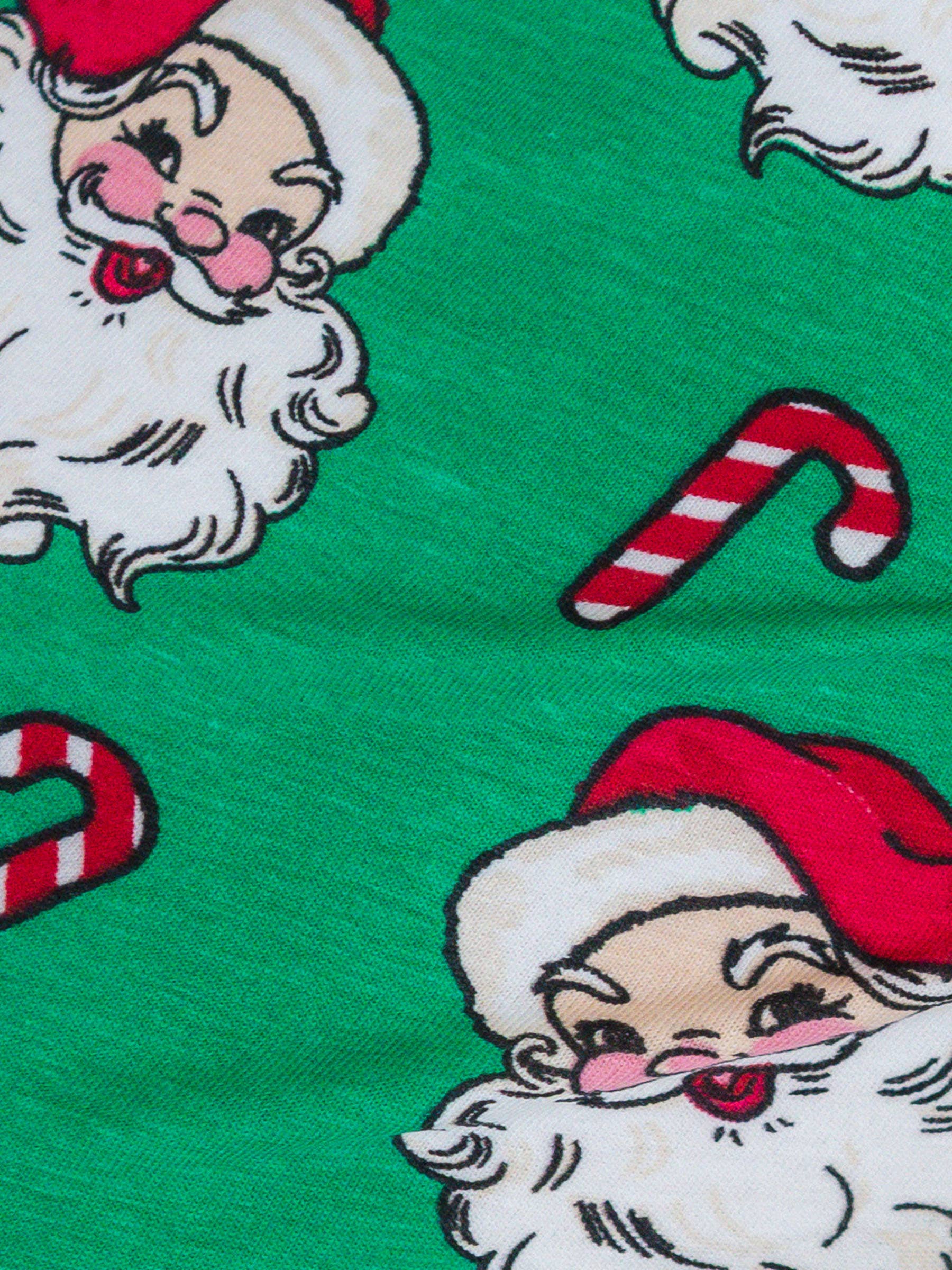 Sweet candy canes and retro-inspired Santas make this print perfect for Christmas and staying cozy during the winter holiday season! Pairs well with Green, Red, White, Santa Joy.