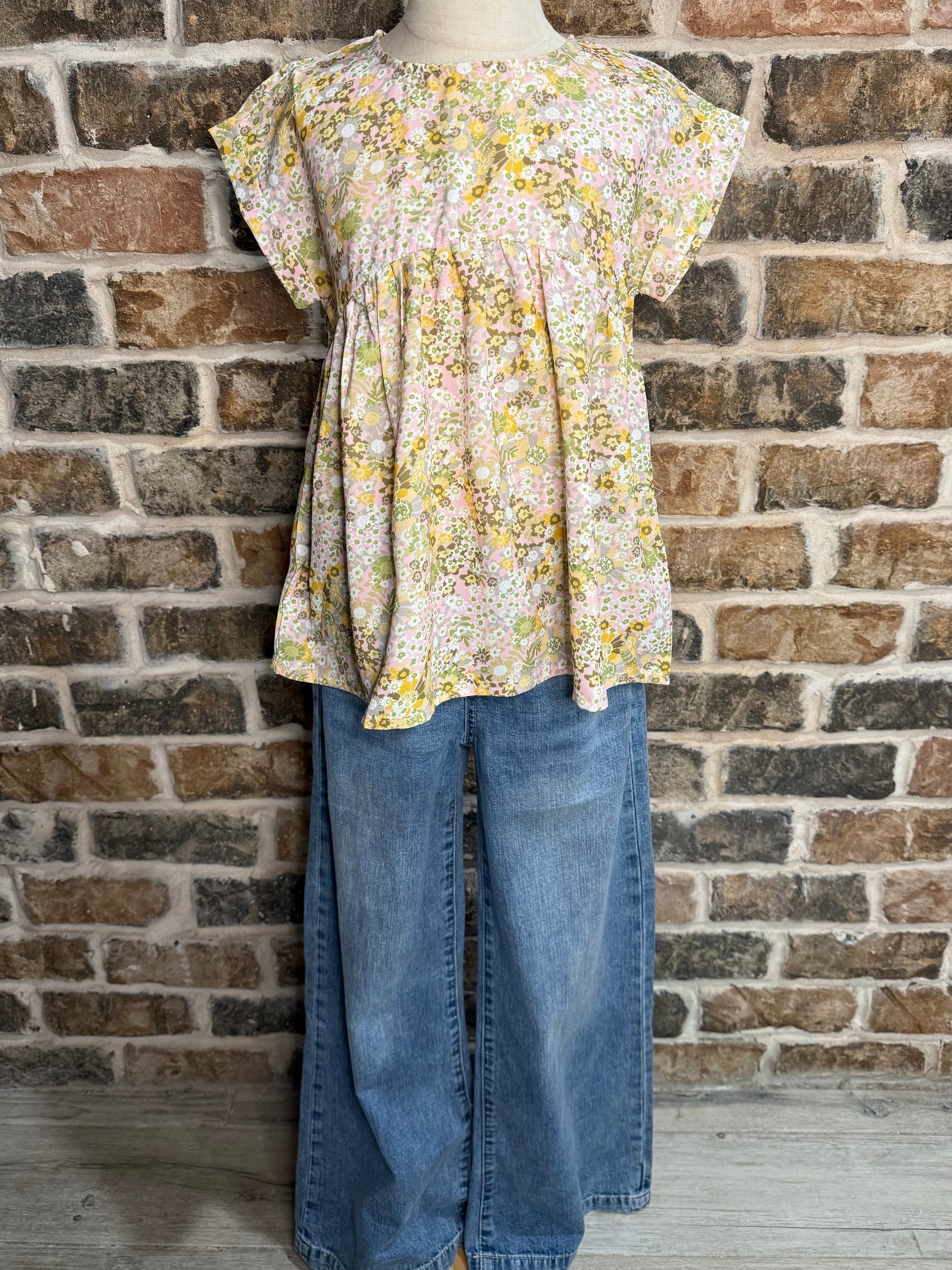 Floral Roll Sleeve Peplum Top