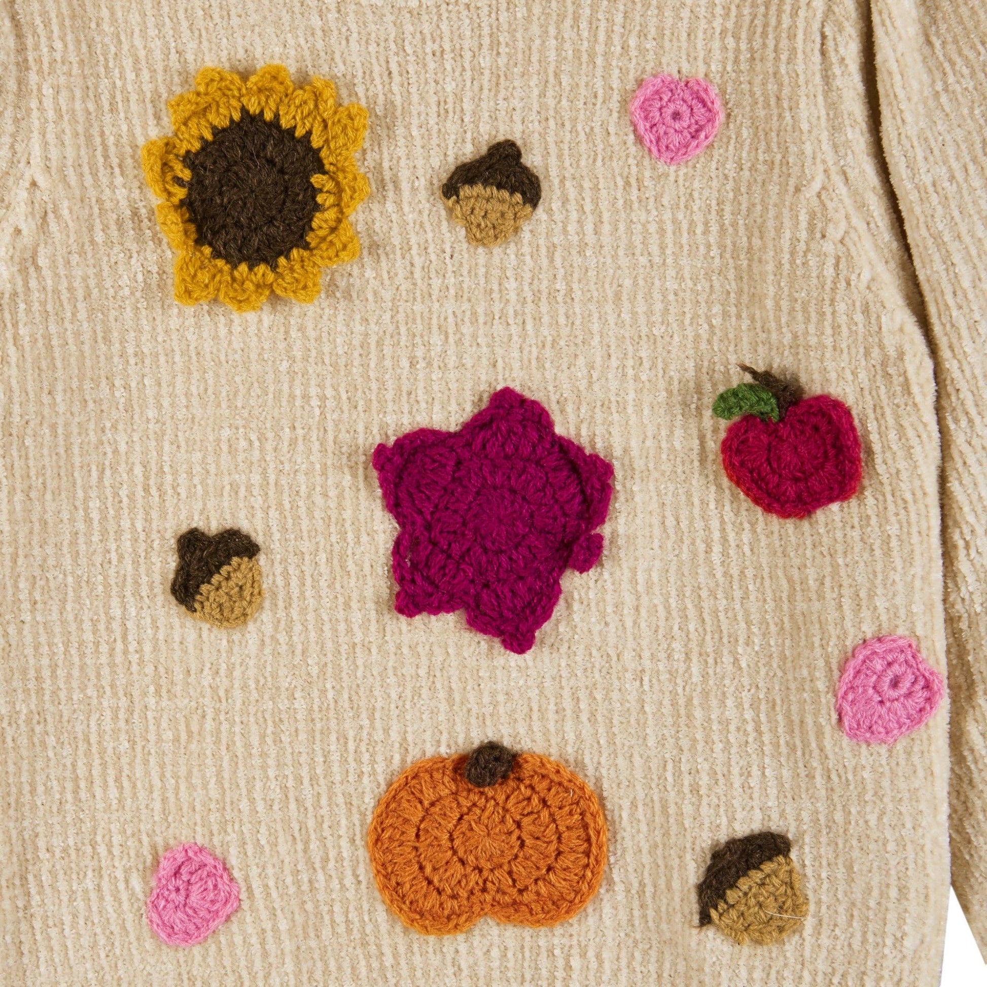 * Fall-Themed Chenille Sweater: Soft, warm chenille fabric with cute seasonal embellishments.