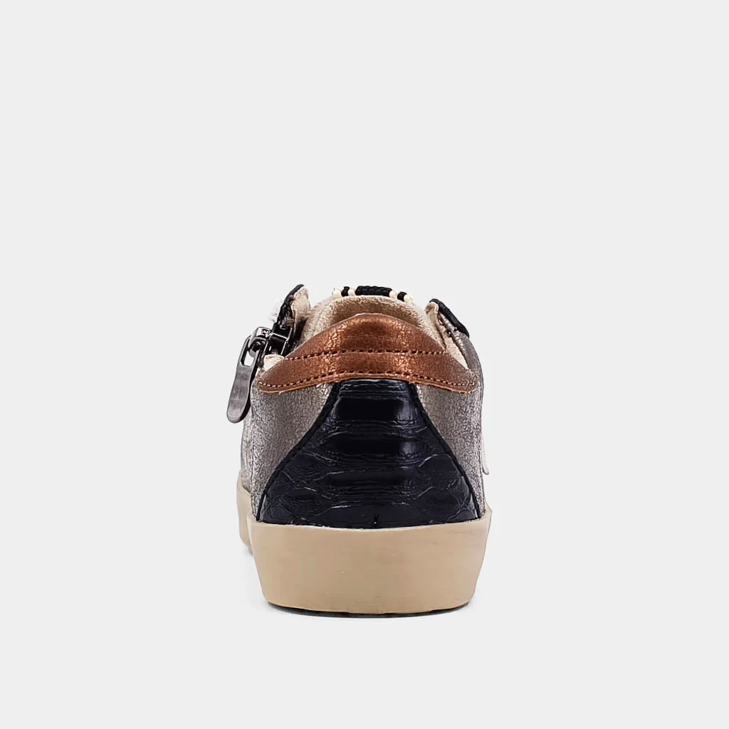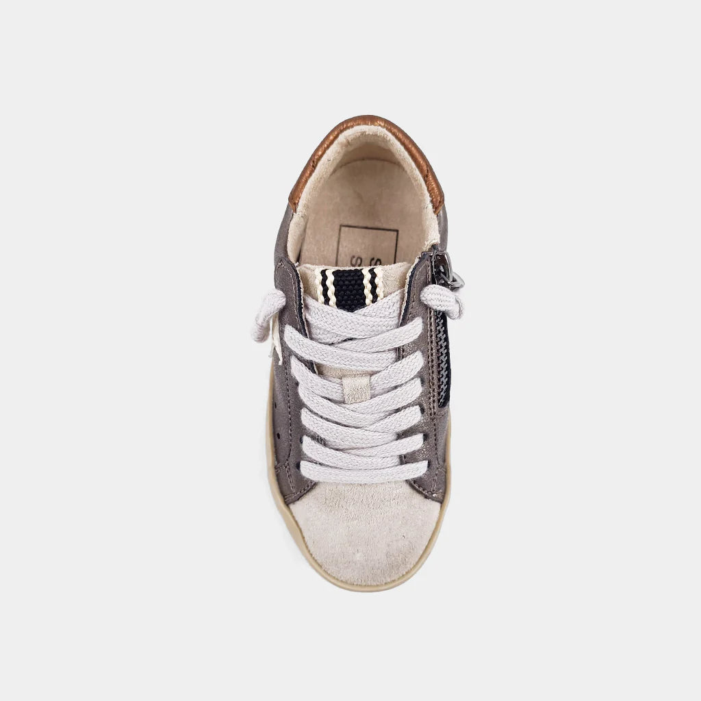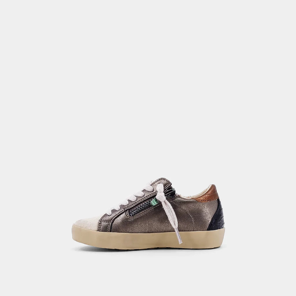 Our Mommy and Me collection features fun-sized versions of our best-selling sneakers. Don't miss out on this chance to match your little one's outfit with the coolest kicks. One of our favorite must-have retro sneakers is PAZ, with a low-top upper body crafted in faux iridescent leather and glitter in silver, lilac, and white. These sneakers look amazing paired with shorts, cropped jeans, and dresses. ShuShop