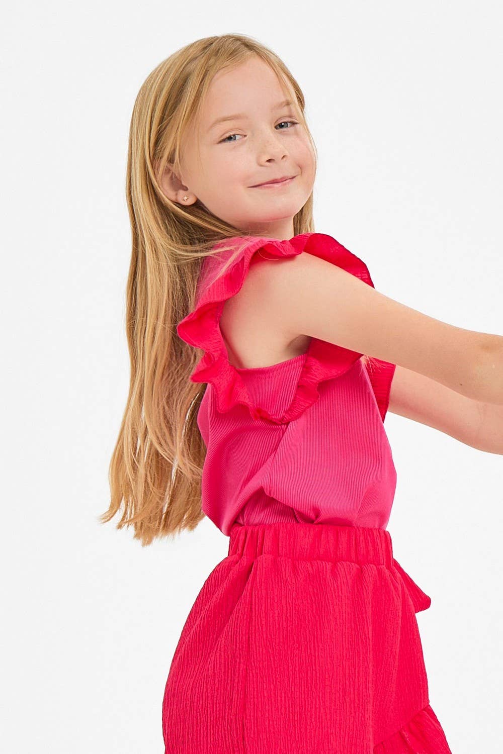 Ruffle Sleeve Ribbed Knit Top & Ruffle Skort Set